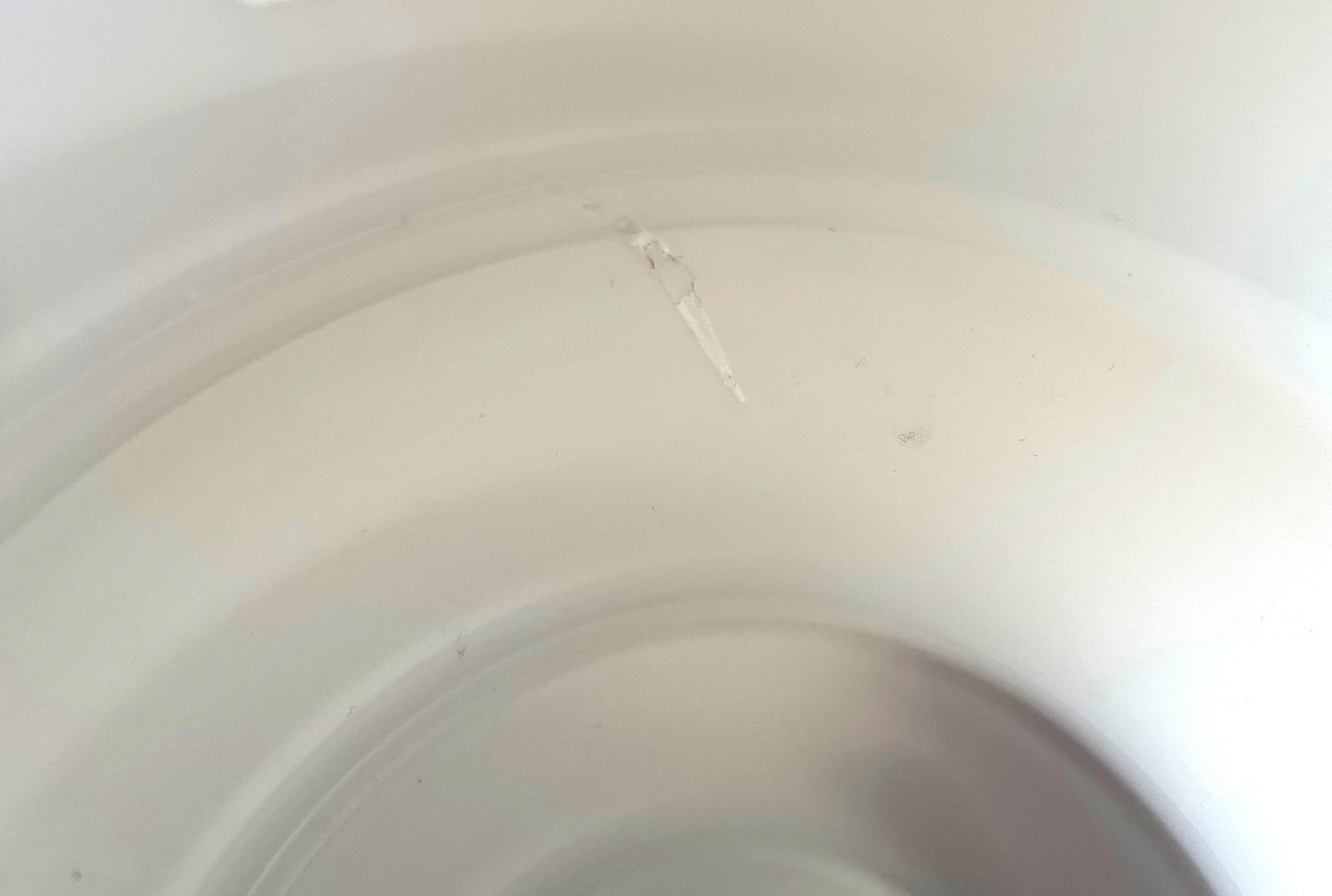Holmegaard, Karen Blixen opalinehvid vase stor størrelse. Designet af Anja Kjær i 2000. Vasens form er inspireret af afrikanske kvinders hals og armringe. Højde 30,5 cm. Diameter 17,5 cm. OBS der er 2 indvendige produktionsfejl. Den øverste som en revne i glasset, den nederste som en boble, den kan ses udefra. Pris: 400 kr. stk. Lager: 1
