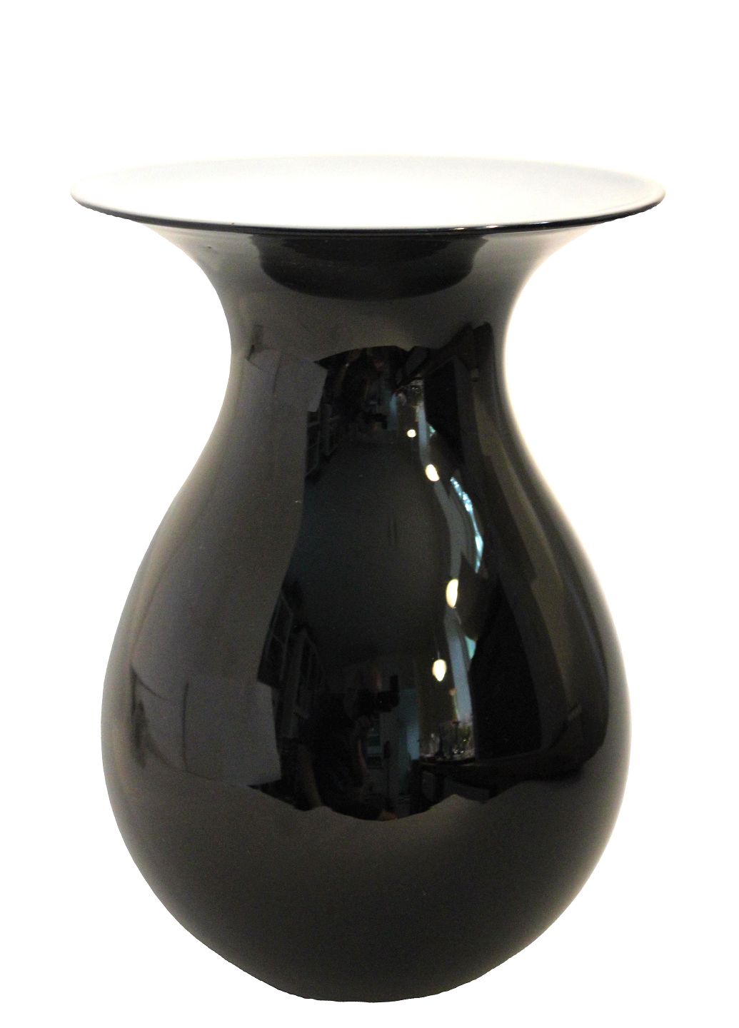 Holmegaard, Shape, Sort vase opalhvid indvendig, mundblæst glas. Designet af Peter Svarrer 2005. Højde 21 cm. II. sortering. Der er små bobler/blærer på den hvide krave, se foto. Pris: 325 kr.
