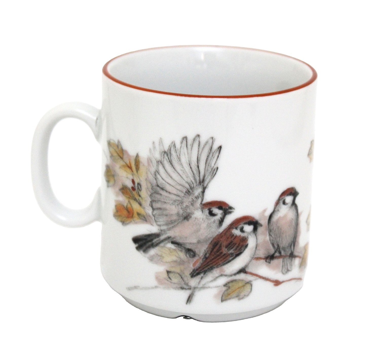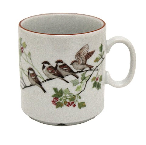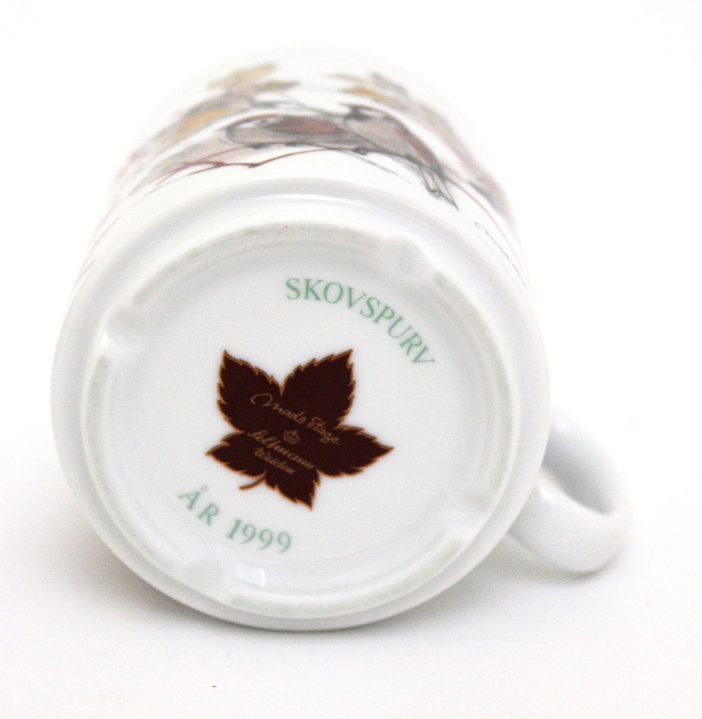 Mads Stage årskrus 1999. Skovspurv. Højde 8,5 cm. Diameter 7,5 cm. Pris: 175 kr. stk. Lager: 5
