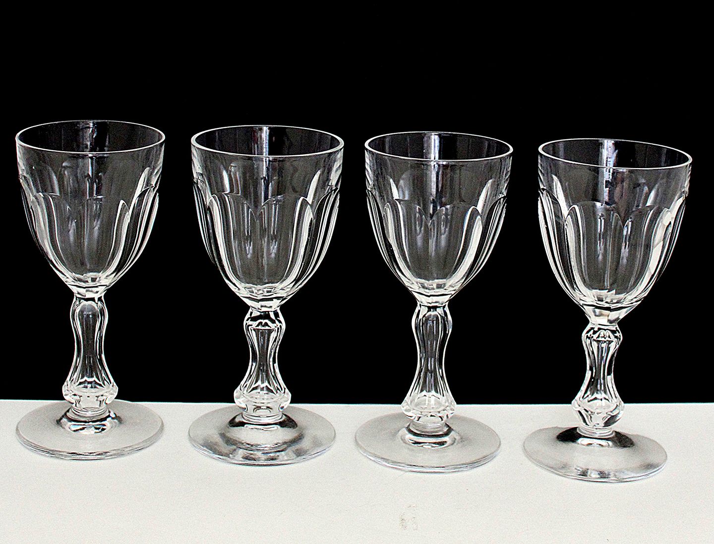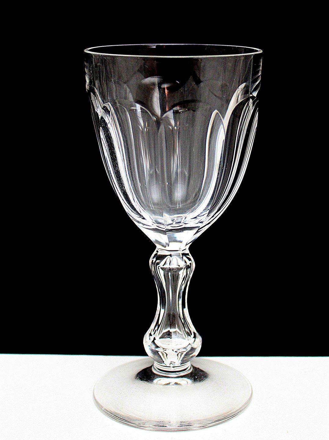 Elegante krystal vinglas med olive slibning og hul timeglas stilk. Minder meget om Bernadotte fra Holmegaard, men disse her er mere afrundede i kummen. Højde 14,5 cm. Øverste diameter 6,5 cm. Pris: 175 kr. stk. Lager: 7