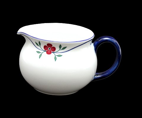 Rørstrand, Sundborn, dishwasher safe porcelæn. Dekoreret af Pia Rönndahl. Fra det oprindelige Rørstrand, da de stadig producerede i Sverige. Mælkekande. Højde 14 cm. Øverste diameter 10 cm. Længde 16 cm. Pris: 250 kr. stk. Lager: 1
