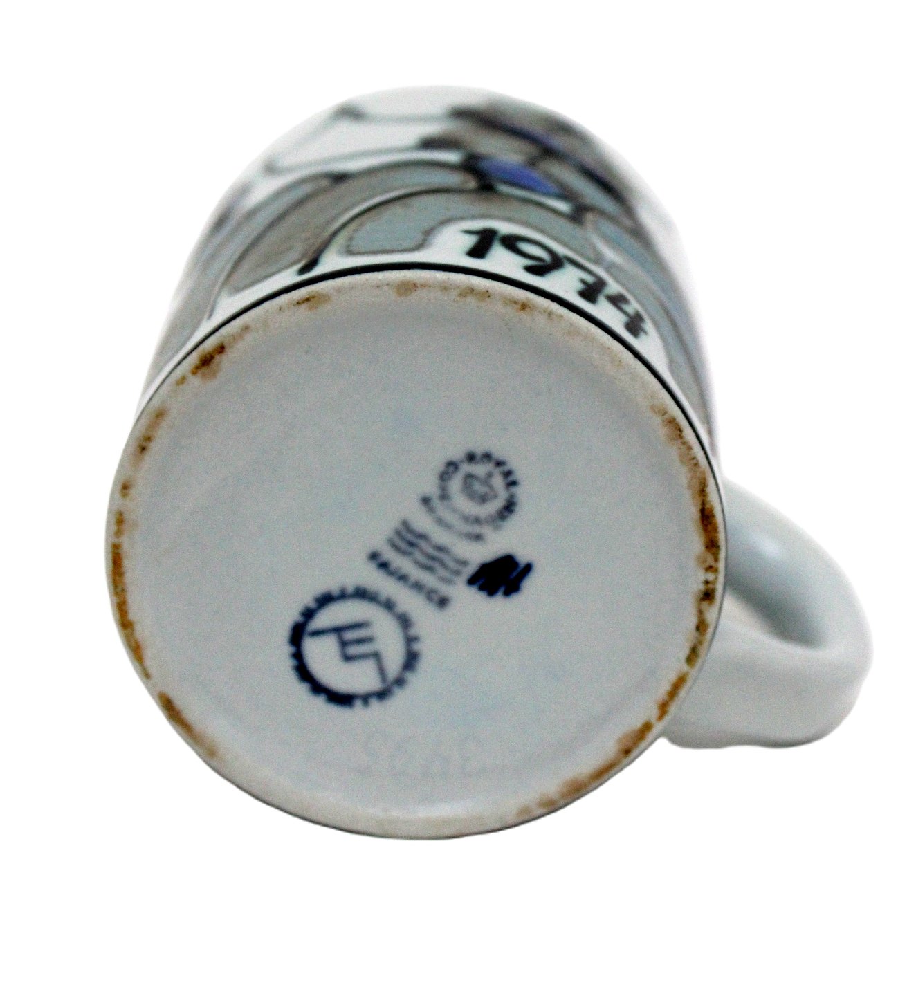 Royal Copenhagen, Lille årskrus 1974. Designer Ellen Malmer. Nr. 3495. Årskrus er produceret fra 1967 til i dag. Højde 7,5 cm. Diameter 6,5 cm. Pris: 125 kr. stk. Lager: 1
