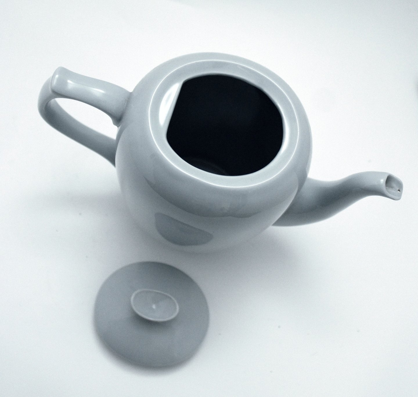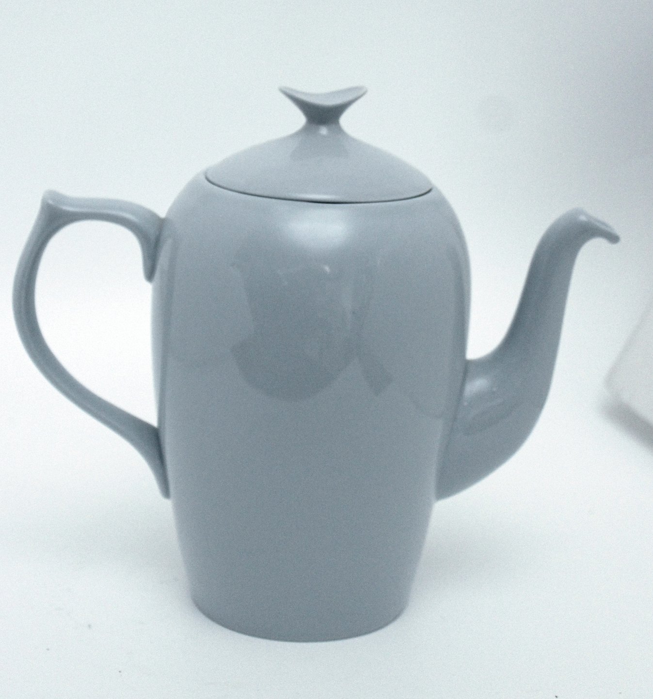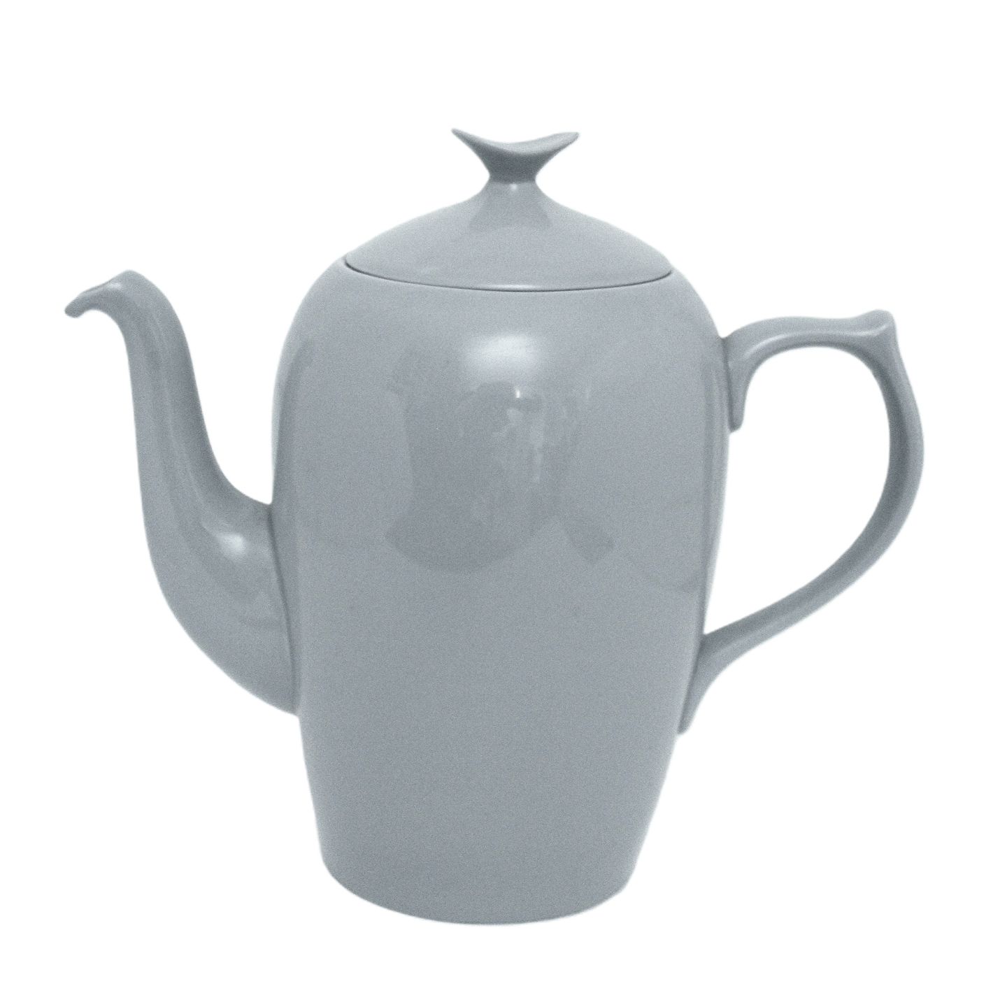 Bing & Grøndahl, Leda, Sart lysegrå/lyseblå stel. Kaffekande. Farven snyder meget, på billederne ser det lyseblåt ud og alt efter lyset ser det gråt ud.